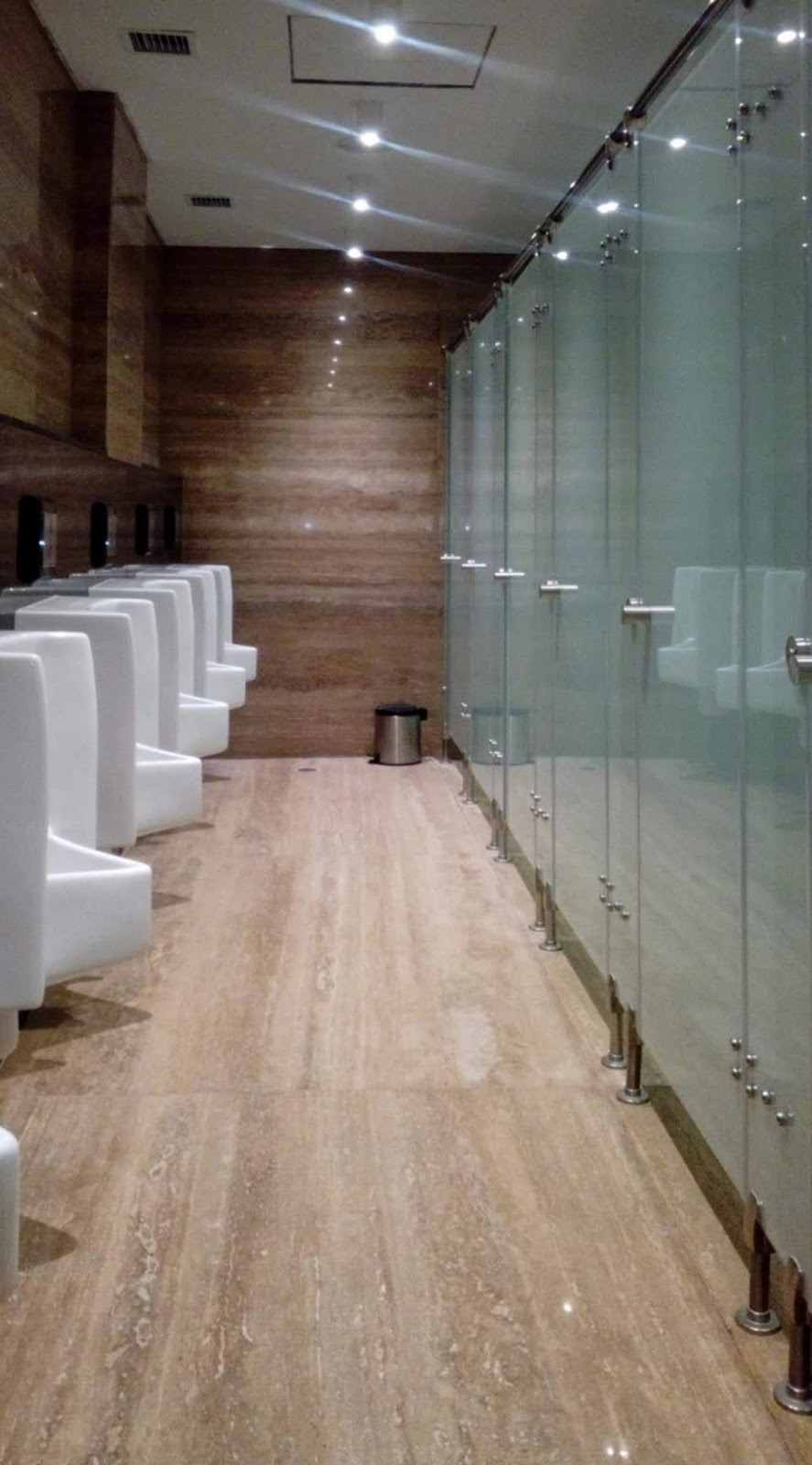 Pasang cubicle toilet kaca untuk kebutuhan mall dan pusat perbelanjaan dengan desain modern